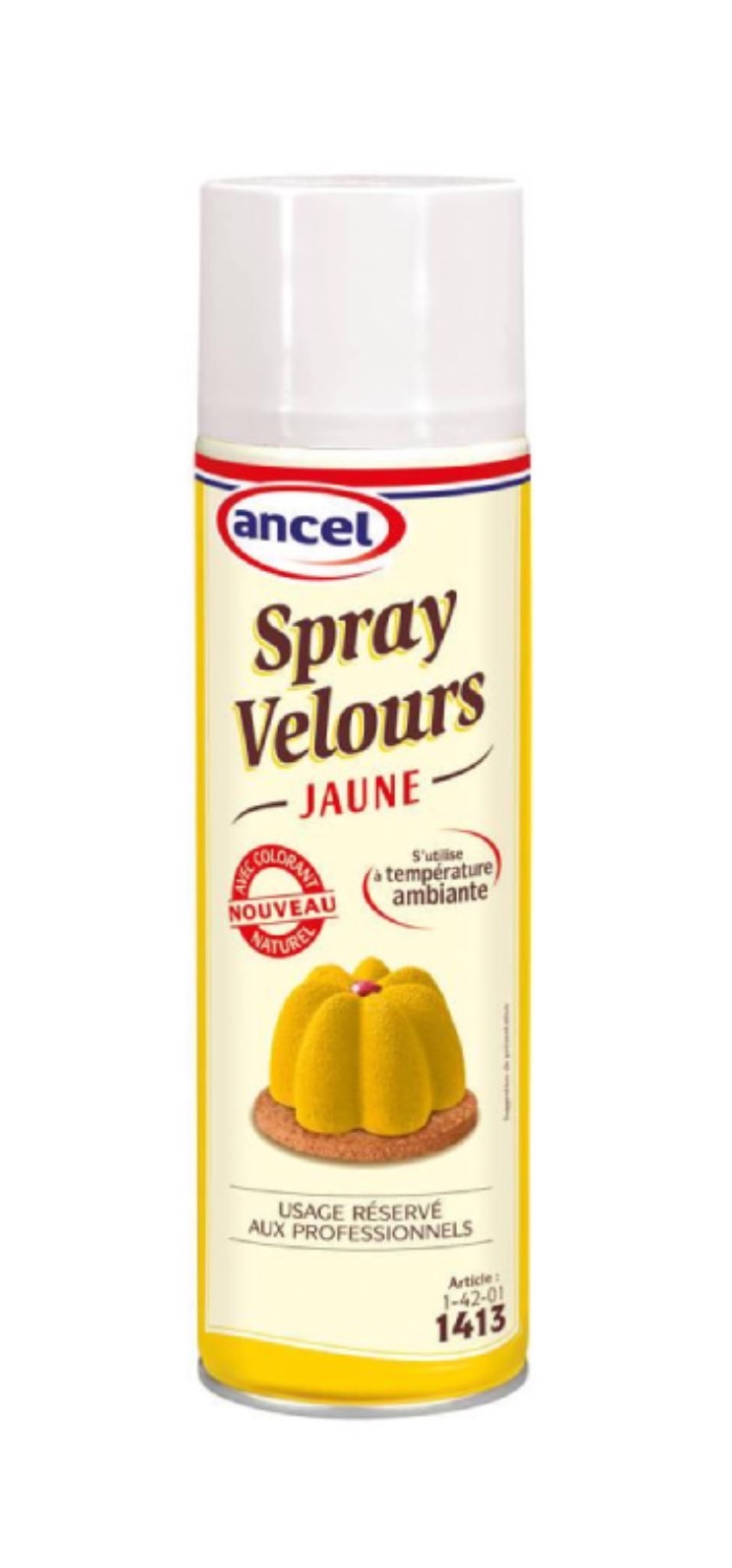 Le Spray velours jaune est une préparation colorante à base de beurre de cacao et de colorants naturels qui permet d'obtenir un magnifique effet velours jaune. Prêt à l'emploi, le spray velours s'utilise à température ambiante sur des pièces congelées. Il permet ainsi de donner une finition soignée et moderne à tous types d'entremets ou entremets glacés.