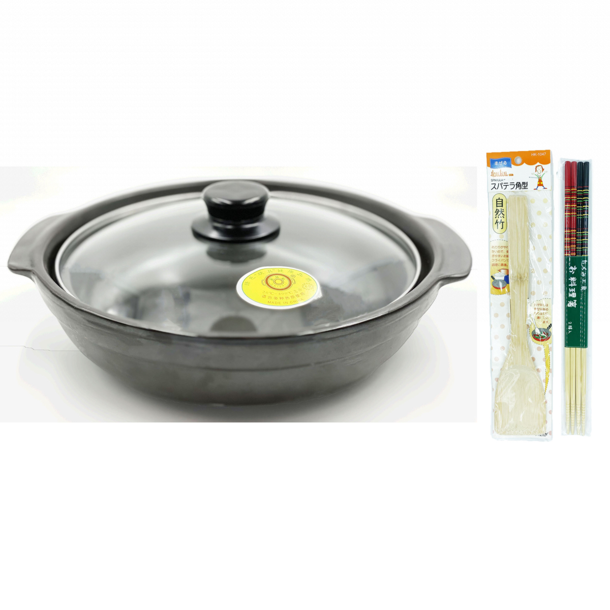 Cette marmite en fer est vendue seule, ou en lot avec 2 paires de baguettes en bambou + 1 spatule en bambou. Choisissez l'option que vous préférez dans le menu ci-dessus.