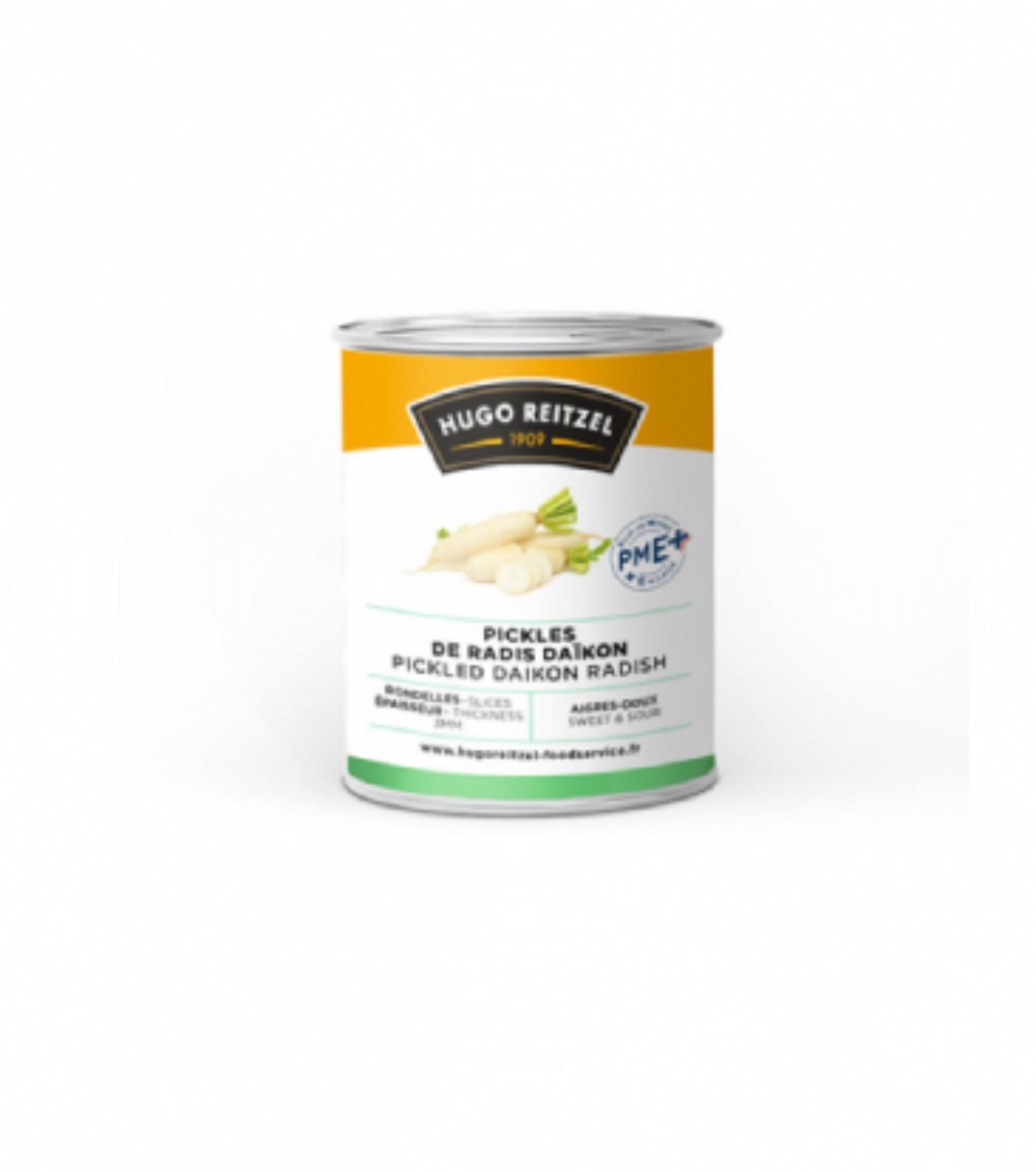 Liste des ingrédients: Radis Daïkon (51%), eau, vinaigre d'alcool, sucre, affermissant : chlorure de calcium, conservateur : métabiSULFITE de sodium. Traces éventuelles de moutarde